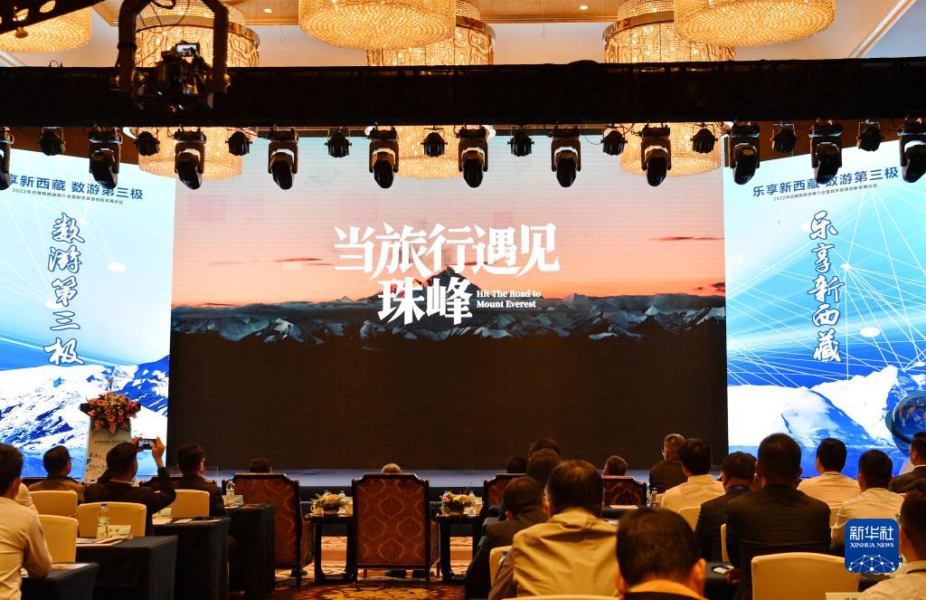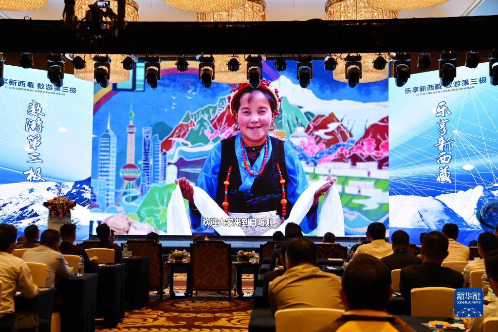 在2022年西藏日喀則旅游推介會暨數(shù)字旅游創(chuàng)新發(fā)展論壇上,國內(nèi)業(yè)界人士就數(shù)字文旅和日喀則旅游數(shù)字化發(fā)展前景進(jìn)行主題演講和對話(7月15日攝)。新華社記者 張汝鋒 攝