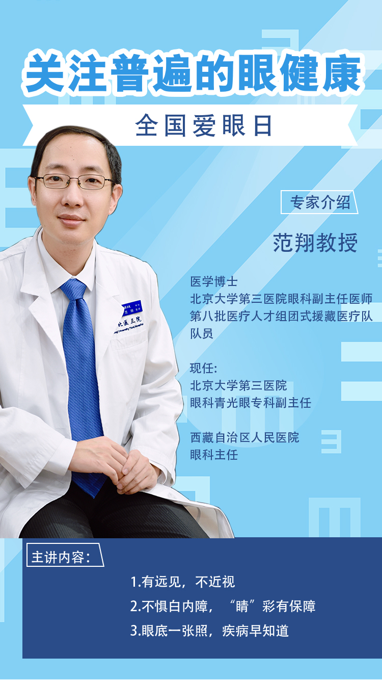 本期人物是來(lái)自北京大學(xué)第三醫(yī)院眼科專(zhuān)家、副主任醫(yī)師范翔,為大家總結(jié)眼病防治的常見(jiàn)知識(shí)。讓我們一起關(guān)注全年齡段全生命周期普遍的眼健康。