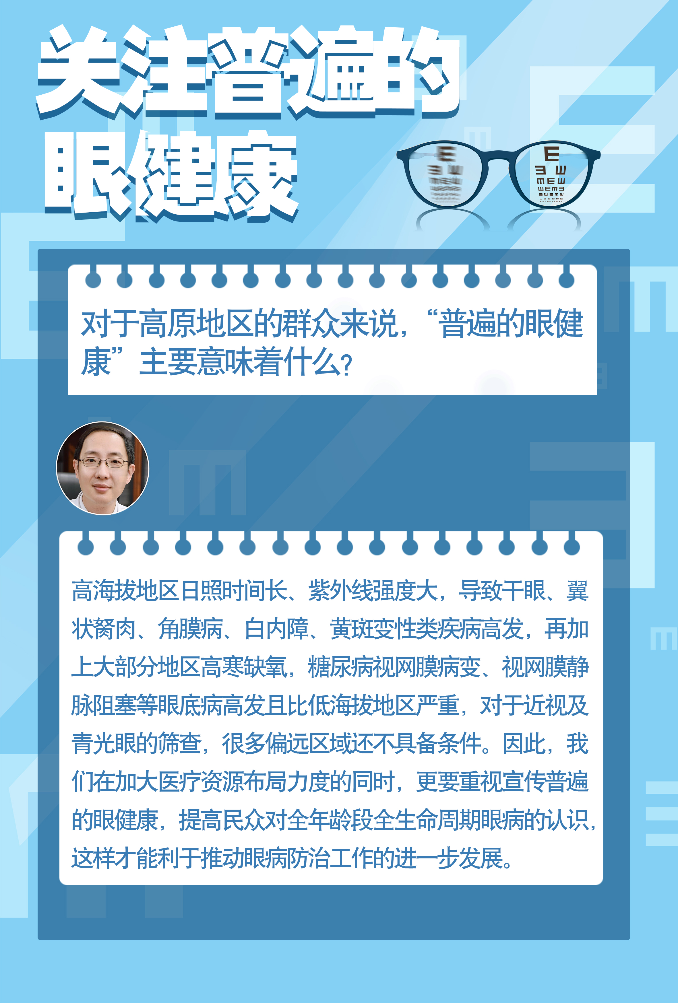 眼睛是人類(lèi)感官中最重要的器官之一,也是人體最容易罹患疾病的器官之一。著重關(guān)注兒童青少年、老年人兩個(gè)重點(diǎn)人群,防治近視、白內(nèi)障、眼底病、青光眼、角膜盲等重點(diǎn)眼病,提高全社會(huì)對(duì)全年齡段全生命周期普遍眼健康的認(rèn)識(shí),尤為重要。