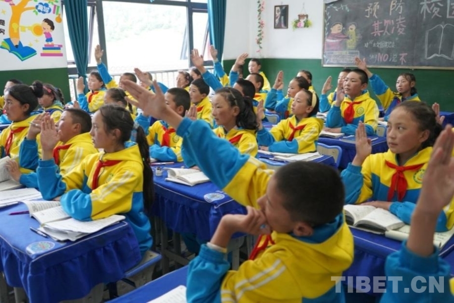 圖為那曲市索縣西昌鄉(xiāng)小學(xué)學(xué)生在課堂上舉手回答問(wèn)題 攝影:吳建穎