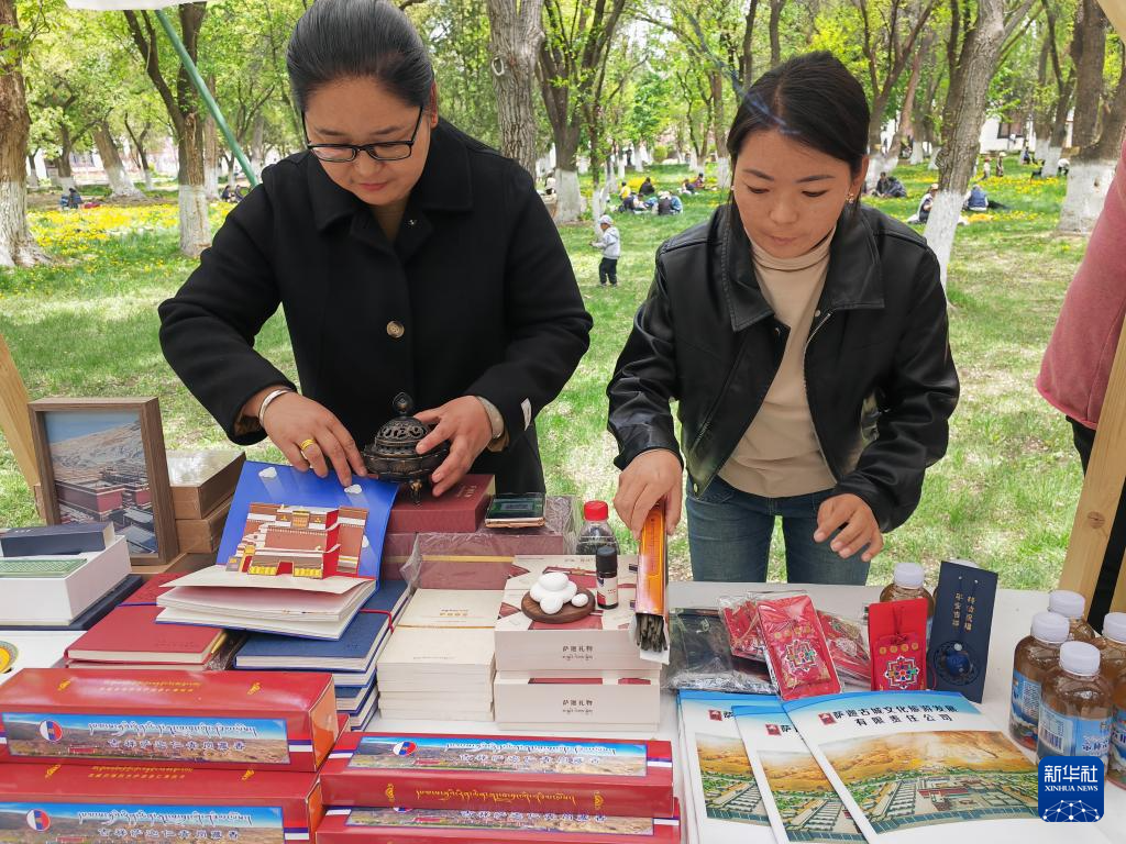 裝飾精美的藏式茶具、羊毛氈制的牧羊人玩偶、打開(kāi)封面彈出立體建筑的創(chuàng)意手賬本……在林蔭道旁,文博文創(chuàng)集市集中展現(xiàn)了10多類500余種特色鮮明、別出心裁的文創(chuàng)產(chǎn)品,引得不少游客駐足選購(gòu)。