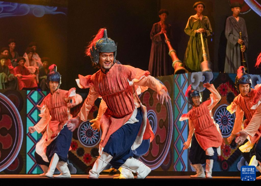 7月19日,在西藏拉薩《緣起象雄·古格遺風(fēng)》情景歌舞詩演出現(xiàn)場,演員在表演節(jié)目《勇士戰(zhàn)舞》。新華社發(fā)(格桑雍珍 攝)