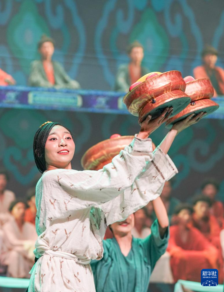 7月19日在西藏拉薩拍攝的《緣起象雄·古格遺風(fēng)》情景歌舞詩演出現(xiàn)場。新華社發(fā)(格桑雍珍 攝)