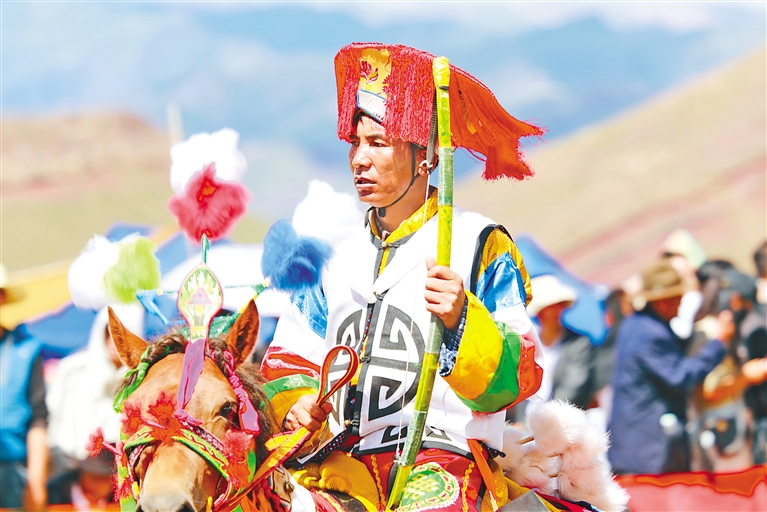沖許嘛(藏語(yǔ)意為“敬酒者”)為騎手唱歌、敬酒、敬茶。