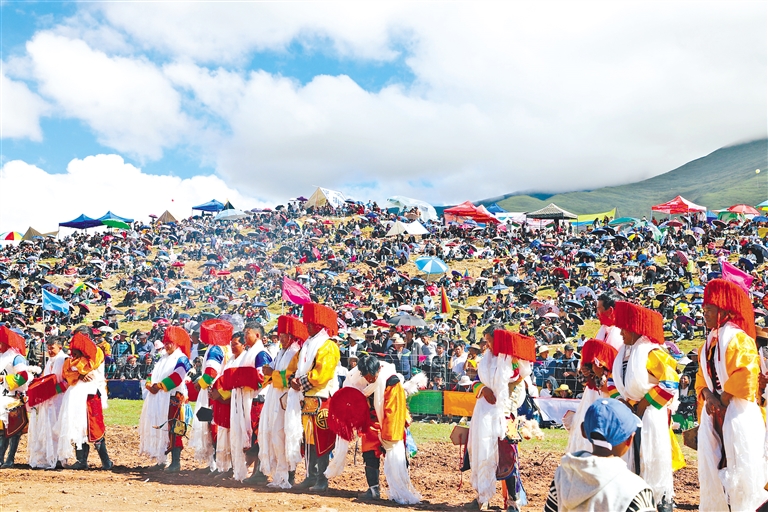 在邊交林鄉(xiāng)當(dāng)杰村“望果節(jié)”活動(dòng)現(xiàn)場(chǎng),隨著激昂的《運(yùn)動(dòng)員進(jìn)行曲》,當(dāng)杰村“平措林望果節(jié)”活動(dòng)拉開帷幕,38名馬術(shù)運(yùn)動(dòng)員、38名射箭運(yùn)動(dòng)員在2萬(wàn)多名觀眾的歡呼聲中邁入現(xiàn)場(chǎng)。