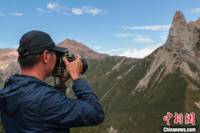 8月20日,參加2024瀾湄國際影像周的中外嘉賓來到青海省玉樹藏族自治州囊謙縣的達那寺,攝影師拍照留念。達那寺是囊謙縣唯一一座國家級文物保護單位。達那寺藏語稱為“達那僧格南宗”,意為“馬耳獅子天堡”,因其坐落之山形似獅子、山上一塊巖石酷似馬耳而得名。中新社記者 薛蒂 攝