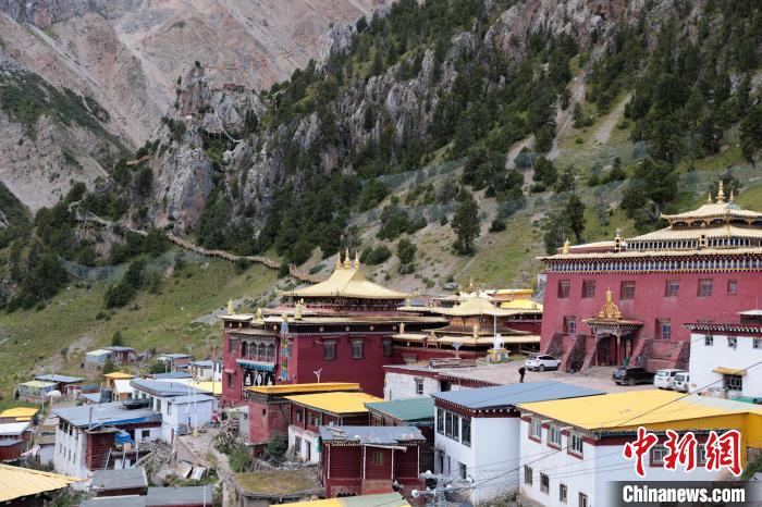 8月20日,參加2024瀾湄國際影像周的中外嘉賓來到青海省玉樹藏族自治州囊謙縣的達那寺。達那寺是囊謙縣唯一一座國家級文物保護單位。達那寺藏語稱為“達那僧格南宗”,意為“馬耳獅子天堡”,因其坐落之山形似獅子、山上一塊巖石酷似馬耳而得名。中新社記者 薛蒂 攝