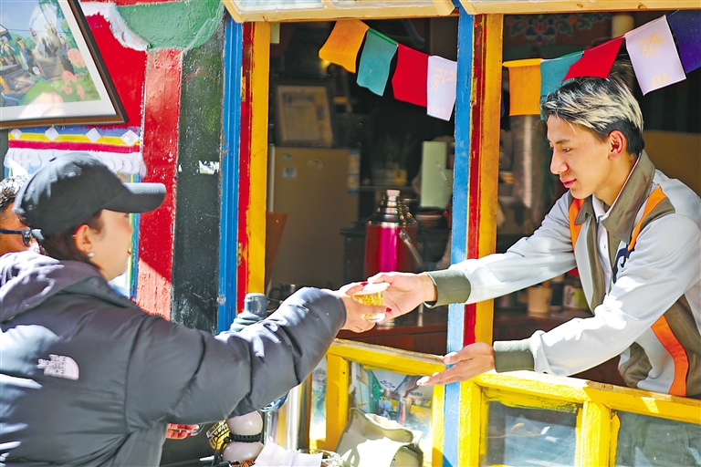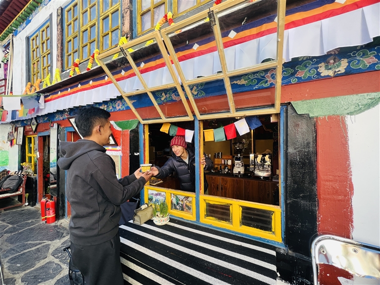 隨著對旦增特覺了解漸深,“擔(dān)當(dāng)”二字如烙印般刻在記者心間。在貢桑孜大院居民眼中,旦增特覺堪稱楷模,咖啡館的客人亦是對他贊不絕口。退休市民白珍笑容滿面地說道:“我們姐妹四個是網(wǎng)上結(jié)識這孩子的,上進(jìn)又努力,瞧著他一路打拼,心里頭滿是欣慰。這不,過幾天要去外地休養(yǎng),特意先來跟他道個別,盼著他這生意越來越紅火。”
