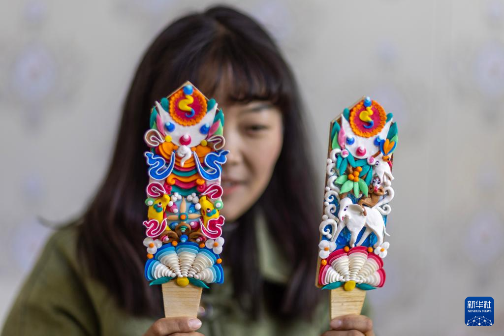 在拉薩市老城區(qū),小學徒在展示剛剛做好的一對酥油花(2月25日攝)。新華社記者 晉美多吉 攝