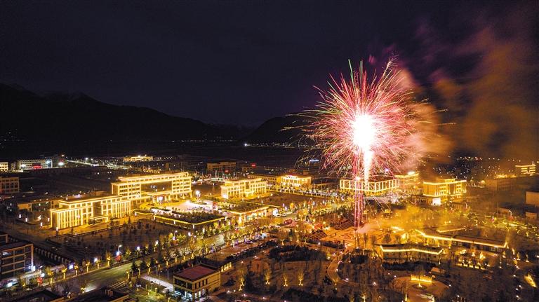 2月27日晚,拉薩市墨竹工卡縣舉辦煙花秀。記者 唐斌 本報通訊員 洛克 攝