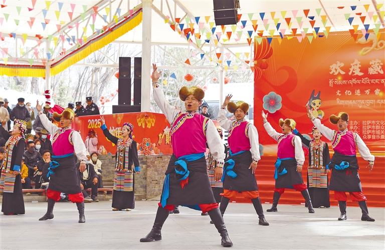 圖為2月28日,“文化進萬家”惠民演出活動在拉薩市宗角祿康公園舉行,精彩紛呈的歌舞節(jié)目輪番上演。記者 旦增蘭澤 攝