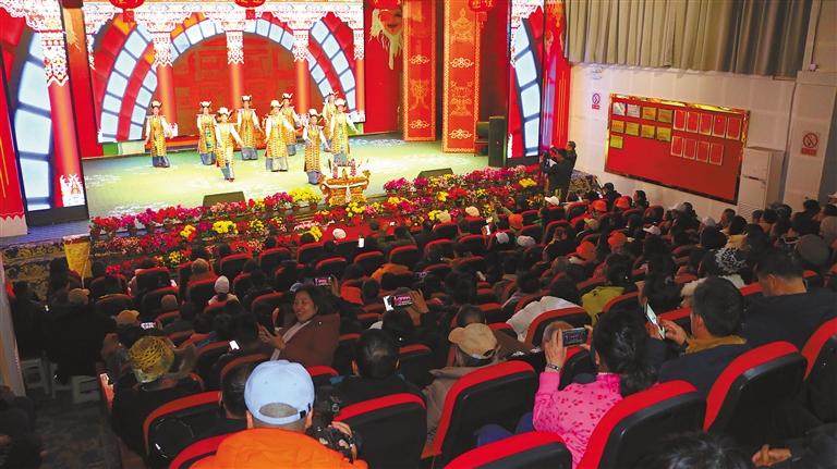 圖為游客在山南市觀看文藝演出。記者 武沛濤 攝