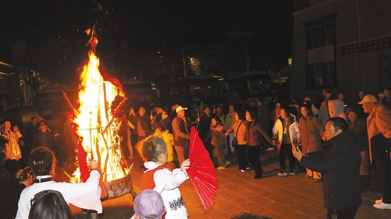 圖為游客和當?shù)厝罕娫隗艋鹎肮餐鹞琛S浾?武沛濤 攝