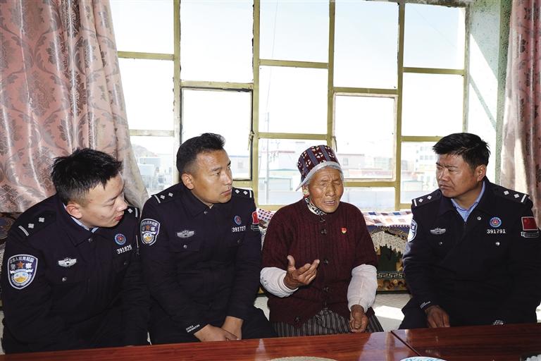 圖為移民管理警察走訪慰問(wèn)老黨員倉(cāng)決普赤。通訊員 格熱 記者 王香香 攝