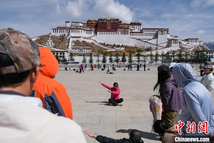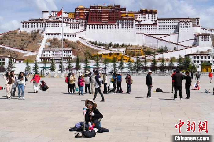 4月18日,游客在拉薩布達(dá)拉宮廣場拍照留念。中新社記者 江飛波 攝