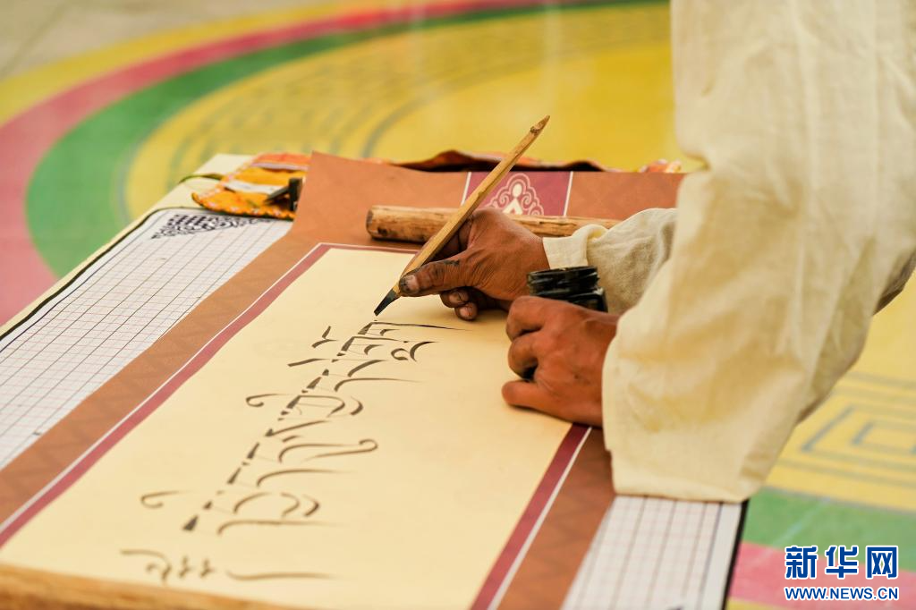 在活動(dòng)現(xiàn)場(chǎng)寫下藏文書(shū)法“春日書(shū)會(huì)”。(受訪者供圖)