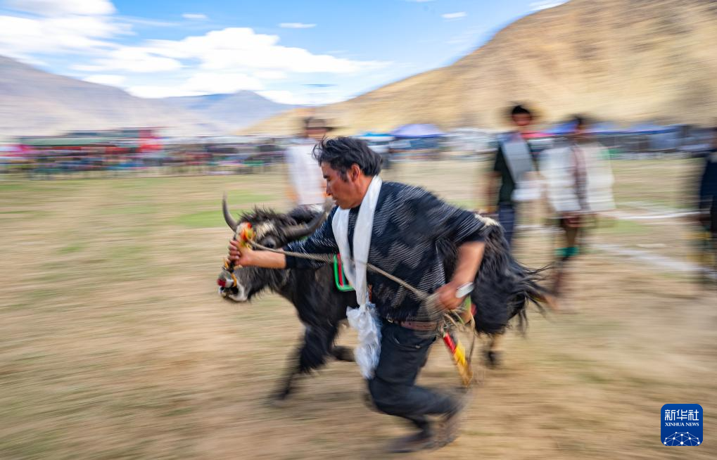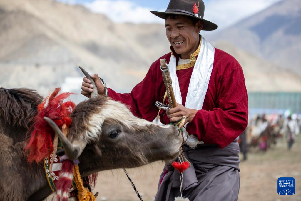 5月29日,當(dāng)?shù)剞r(nóng)牧民群眾在賽牦牛比賽中。新華社記者 丁增尼達 攝