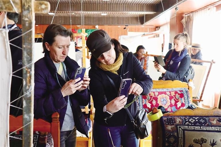 以卡若拉冰川作為日喀則的首站,無疑是開啟雪域高原之旅的絕佳選擇。在領(lǐng)略完壯麗的自然奇觀后,6月7日,國際旅行商代表團轉(zhuǎn)而深入探訪藏文化瑰寶。他們來到日喀則市桑珠孜區(qū)的夏魯村,專程前往西藏優(yōu)章傳統(tǒng)手工藝發(fā)展有限公司考察非物質(zhì)文化遺產(chǎn)——夏魯泥塑和優(yōu)章彩靴。