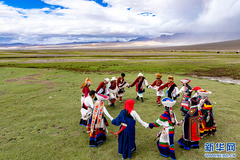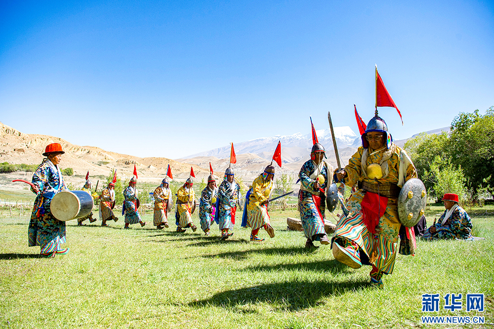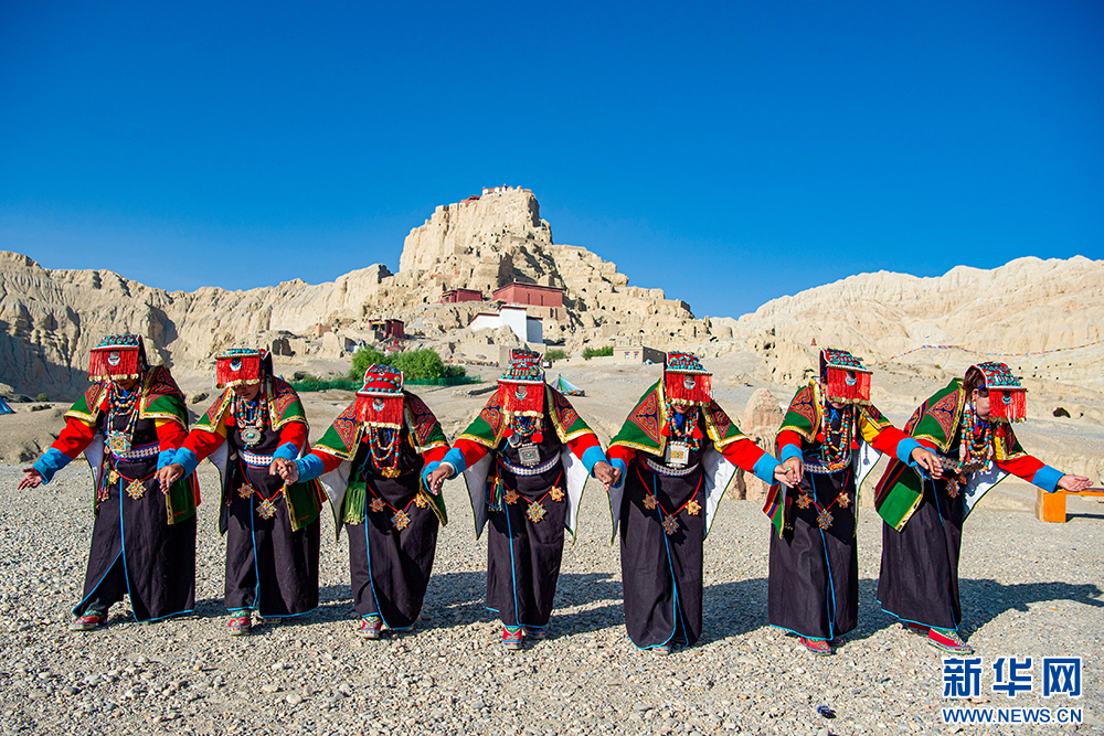 札達(dá)縣群眾在古格王國(guó)遺址腳下表演“宣舞”(6月12日攝)。“宣舞”是西藏阿里民間傳統(tǒng)舞蹈,融合藏戲、舞蹈、說(shuō)唱等傳統(tǒng)民間藝術(shù),內(nèi)容涵蓋禮儀、風(fēng)俗、節(jié)慶等。2008年,被列入國(guó)家級(jí)非物質(zhì)文化遺產(chǎn)名錄。新華網(wǎng) 旦增努布 攝