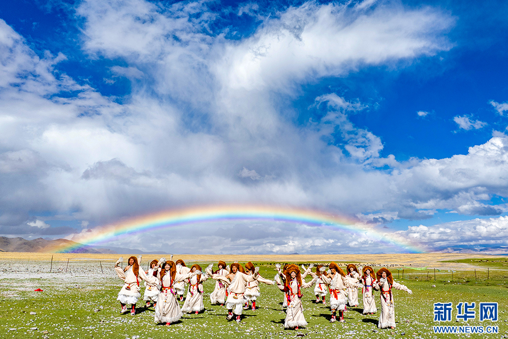 措勤縣藝術(shù)團(tuán)在表演自治區(qū)級(jí)非物質(zhì)文化遺產(chǎn)磁石“帕”卓(6月23日攝)。該舞蹈動(dòng)作優(yōu)美歡快、充滿動(dòng)感,帶有彈性舞步。近年來(lái),措勤縣將磁石“帕”卓改編為課間操進(jìn)校園,讓學(xué)生感受當(dāng)?shù)胤沁z魅力。新華網(wǎng) 旦增努布 攝