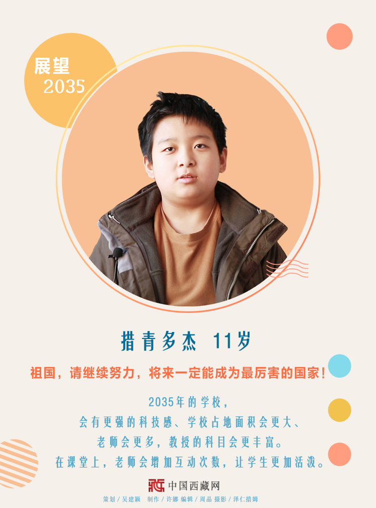 黨的十九屆五中全會提出,到2035年基本實現(xiàn)社會主義現(xiàn)代化。你期待2035年的到來嗎?在你心中,2035年的中國會是什么樣?未來15年,你有哪些大規(guī)劃、小目標(biāo)?中國西藏網(wǎng)策劃推出系列海報,本期帶你走進(jìn)小朋友們關(guān)于教育“未來力”的展望與暢想?!?/p>
