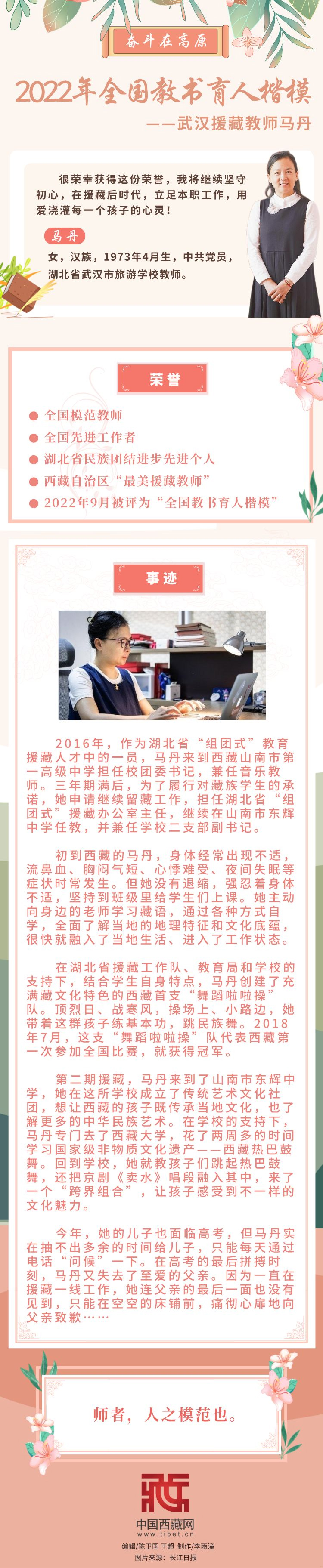 【奮斗在高原】2022年全國教書育人楷?!錆h援藏教師馬丹