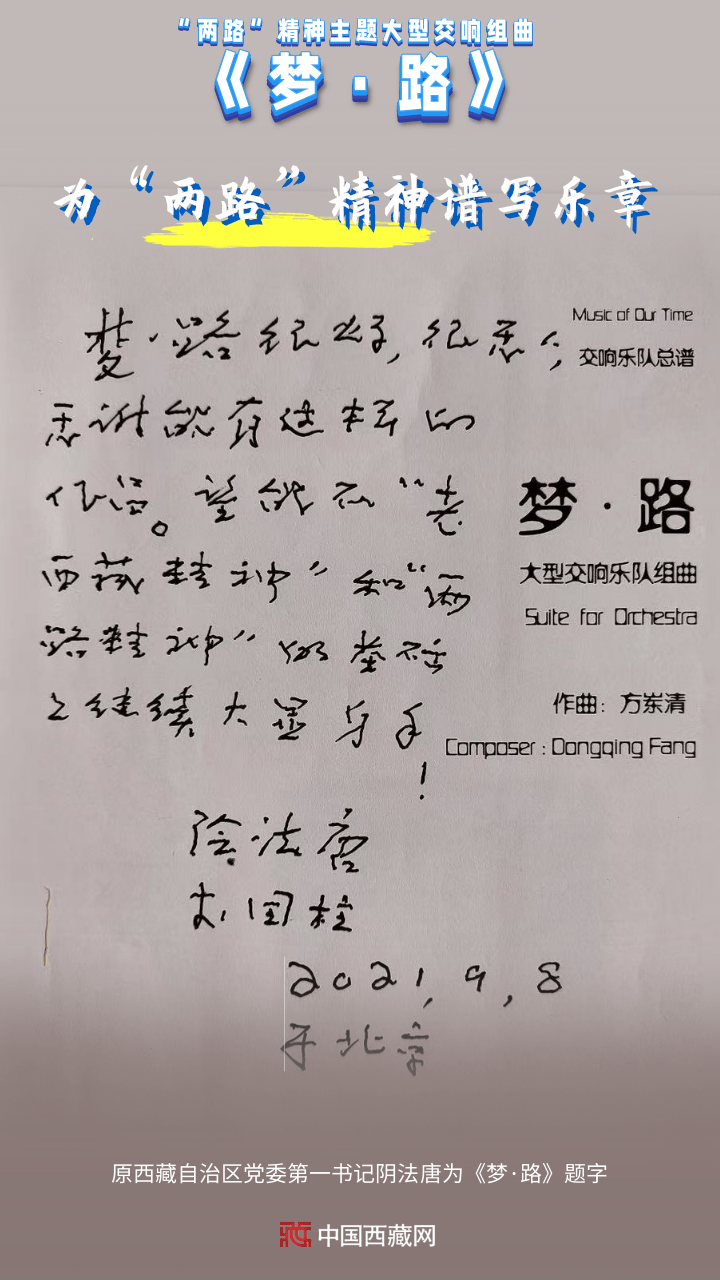 創(chuàng)作團隊三次深入西藏、四川、青海等省區(qū)市的二十多個“兩路”相關(guān)歷史地域,拜訪數(shù)十位民族民間器樂演奏、聲樂演唱、藏戲表演藝術(shù)家和國家級非物質(zhì)文化遺產(chǎn)傳承人,對藏族風格音樂素材進行詳盡細致的采集,從中國愛樂樂團演奏家們的傾情演奏,到四川省甘孜藏族自治州金剛寺大殿采聲,從錄制藏族姑娘銀鈴天籟般的嗓音,到83歲高齡的國家級非物質(zhì)文化遺產(chǎn)傳承人的獻唱山歌……《夢·路》讓大型交響樂和原生態(tài)聲音融合、碰撞、組合,用音符刻畫了中華筑路英雄馳騁世界屋脊的偉大樂章。(中國西藏網(wǎng) 編輯、制作/王茜 供圖/方崠清)