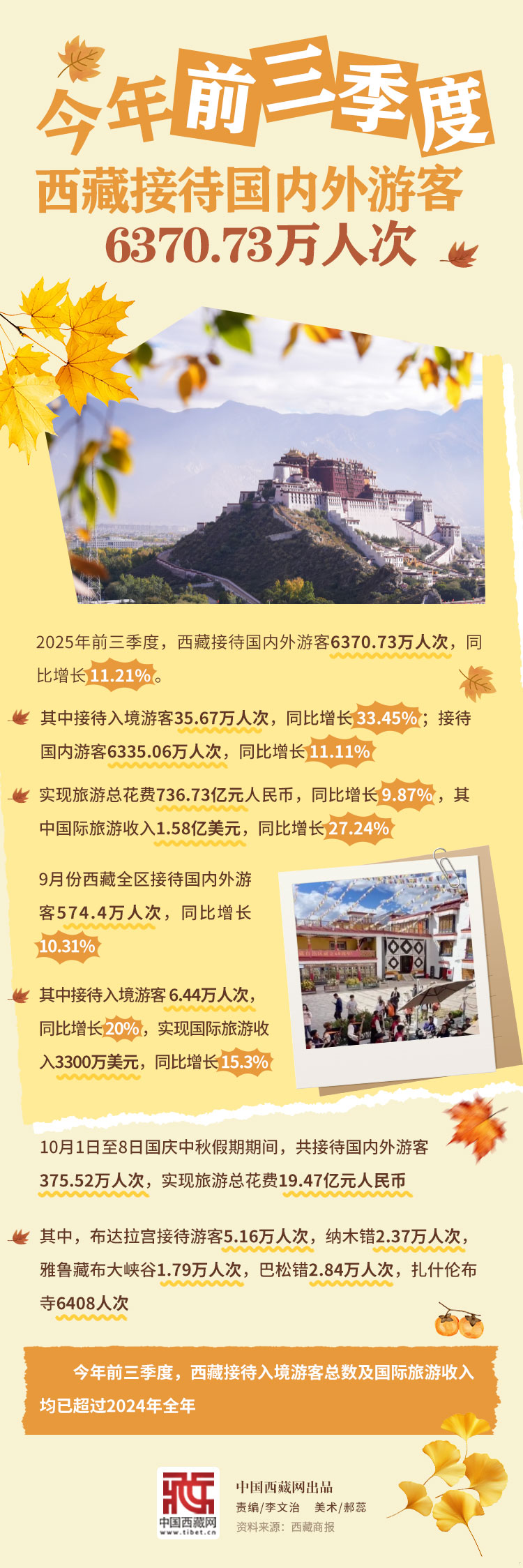 海報|今年前三季度 西藏接待國內(nèi)外游客6370.73萬人次