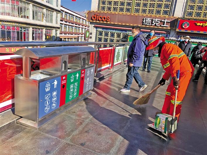 據(jù)城關(guān)區(qū)環(huán)衛(wèi)局局長米瑪次仁介紹,截至2019年底,城關(guān)區(qū)環(huán)衛(wèi)局與拉薩城投潔達(dá)環(huán)衛(wèi)保潔有限公司積極與部分企事業(yè)單位、學(xué)校及社區(qū)等47個區(qū)域?qū)樱謩e投放了四分類垃圾箱120套、240L垃圾桶658個、有害垃圾消納袋116個、腳踏兩分類垃圾桶321個。已建成并投入使用的積分兌換超市3家、垃圾分類投放亭4座、垃圾分類可回收物臨時存放點(diǎn)13個、有害垃圾臨時存放點(diǎn)2個;采購2臺可回收物運(yùn)輸車輛、1臺有害垃圾運(yùn)輸車輛、2臺餐廚垃圾運(yùn)輸車輛和1臺大件垃圾運(yùn)輸車輛。在春節(jié)和藏歷新年期間,抽調(diào)工作人員在娘熱南路、北京東路、江蘇南路、康昂南路、林廓東路、沖賽康天橋、熱木其天橋、八廓商城天橋、阜康天橋等人流量較多的區(qū)域放置了垃圾四分類果皮箱。