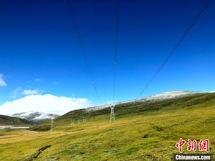 圖為世界海拔最高的330千伏輸變電工程玉樹(shù)聯(lián)網(wǎng)工程輸電線路穿越高山草原。惠文莉 攝