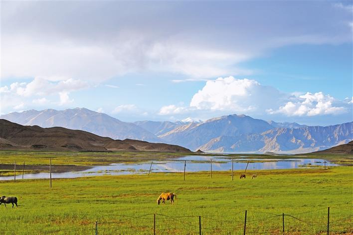 阿里班公湖濕地景色。