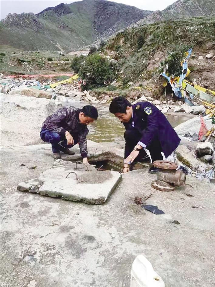 工作人員對蔡公堂鄉(xiāng)斜村水源進行檢查。圖由采訪對象提供