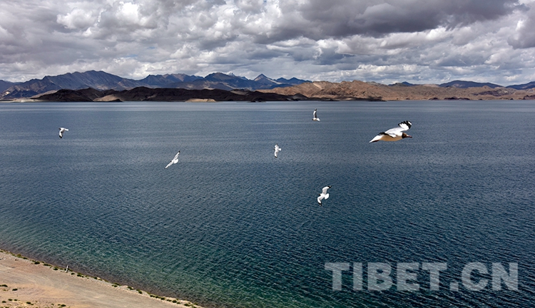 團團云朵懸停藍天,班公湖湖面微波蕩漾。湖岸藏野驢、黑頸鶴悠閑漫步;湖邊棕頭鷗滑翔游弋、魚翔淺底?!笆澜缥菁沟奈菁埂?,人們“不負青山”,也收獲了“金山銀山”。(中國西藏網(wǎng) 記者/王媛媛)