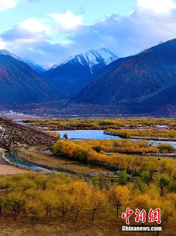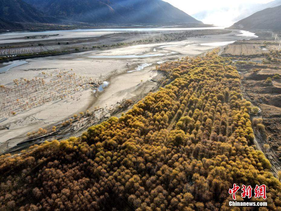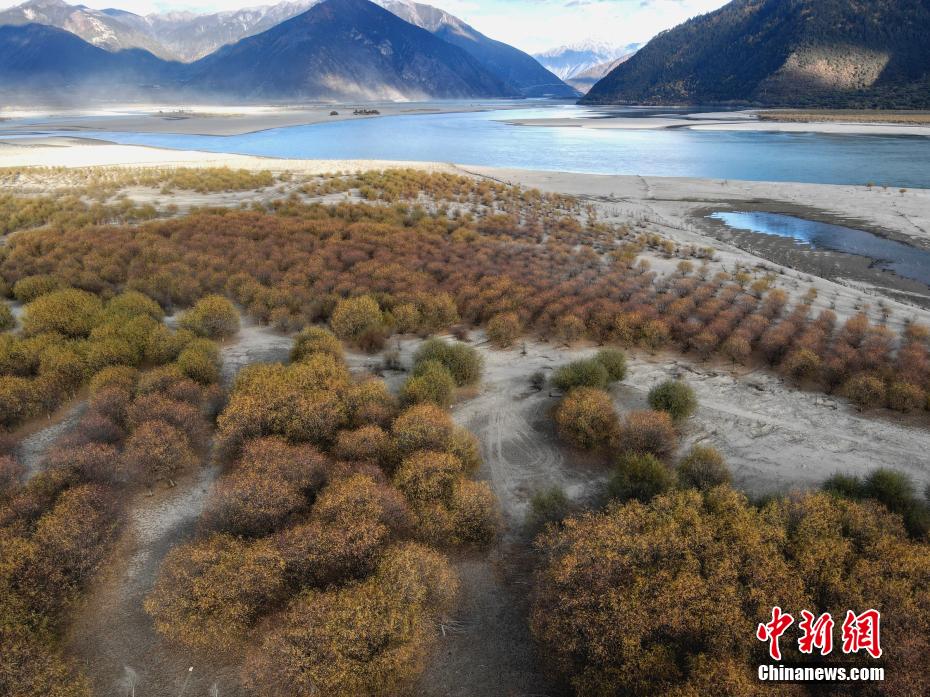 雅魯藏布江位于西藏自治區(qū)境內(nèi),是世界海拔最高的大河之一。近日,記者途徑雅魯藏布江看到,深秋時(shí)節(jié),兩岸的柳樹林變得金黃一片,峽谷間秋色宜人,美如畫卷。值得一提的是,在秋冬兩季的日落時(shí)分,傳說中“十人九不遇”的南迦巴瓦峰變得相對(duì)容易看到“日落金山”的景象,十分壯觀。江飛波 攝