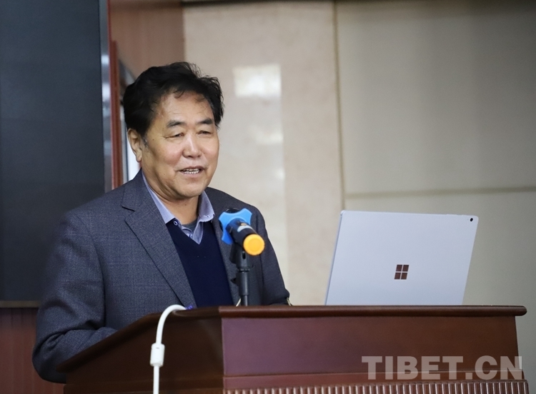 圖為中國工程院院士多吉作報告