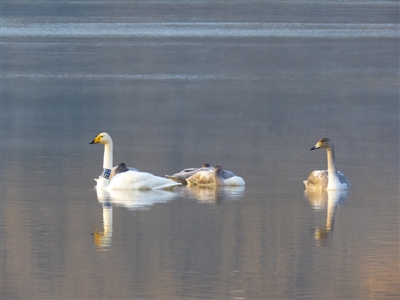 大天鵝的脖頸上為什么戴著一只刻有編號的“項圈”?這個“項圈”是什么部門戴上去的?有什么作用?記者聯(lián)系到青海國家公園觀鳥協(xié)會會長王艦艇,據(jù)介紹,青海東部處在亞洲大陸候鳥遷徙的中線和西線通道上,入冬以來,大天鵝會以家族為單位從亞洲各國飛抵青海境內棲息越冬,而此次趙女士拍攝到的戴有環(huán)志的大天鵝來自蒙古國,同樣也是以“4大4小”為組合的兩個家族為單位遷徙來青海的。“大天鵝的遷徙路線是相對固定的,變化區(qū)域不大,只要這只大天鵝一直存活,且一直戴著環(huán)志,那么每一年都有可能在青海境內再次看到它的身影。”王艦艇說。
