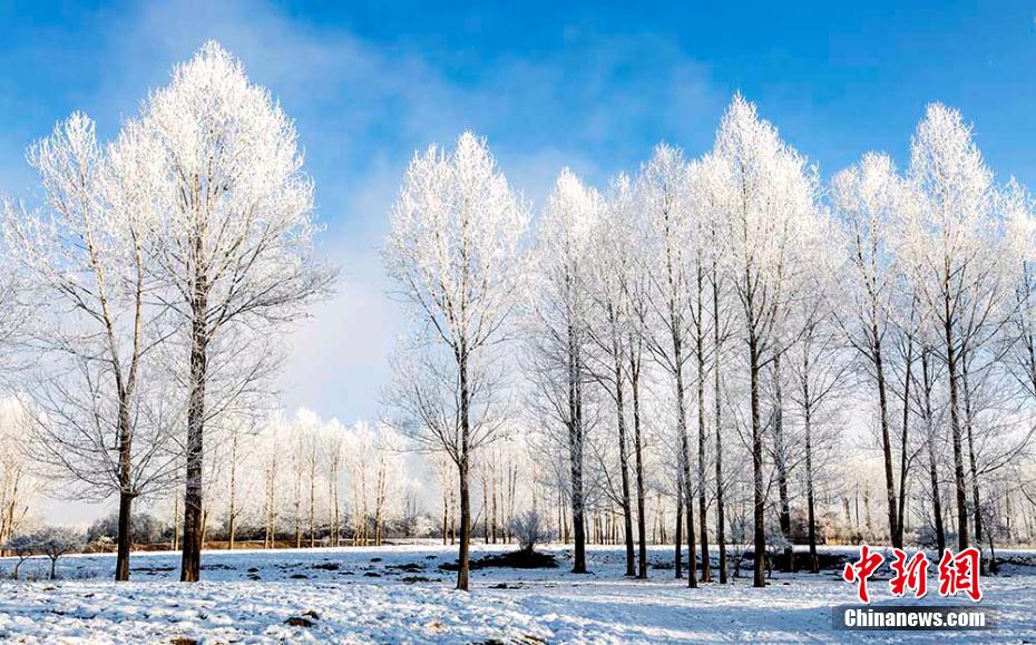 12月21日清晨,祁連山生態(tài)公園核心地區(qū)門源浩門河南岸出現(xiàn)冬日霧淞景觀。上午9時許,浩門河邊的青年林云消霧散,晴空萬里,碧水藍(lán)天,玉樹瓊花,美不勝收。
