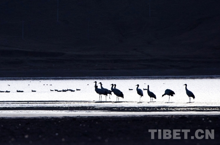 兩面夾山、背風(fēng)向陽的虎頭山水庫,是候鳥的主要夜棲地。每年10月中旬開始,國家一級野生保護(hù)動物黑頸鶴便從逐漸寒冷的藏北草原出發(fā),成群結(jié)隊地飛越叢山峻嶺遷徙到虎頭山水庫以及其所處的雅魯藏布江中游河谷地帶越冬。