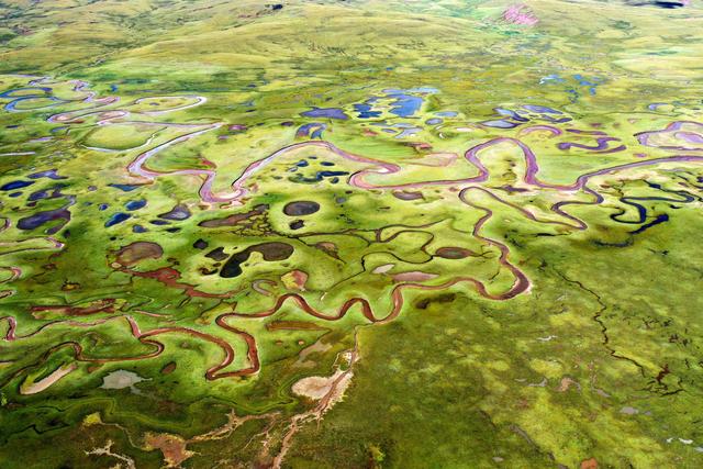 在西藏昌都市貢覺縣拉妥鄉(xiāng)拍攝的拉妥濕地(9月28日攝,無人機照片)。新華社記者 詹彥 攝