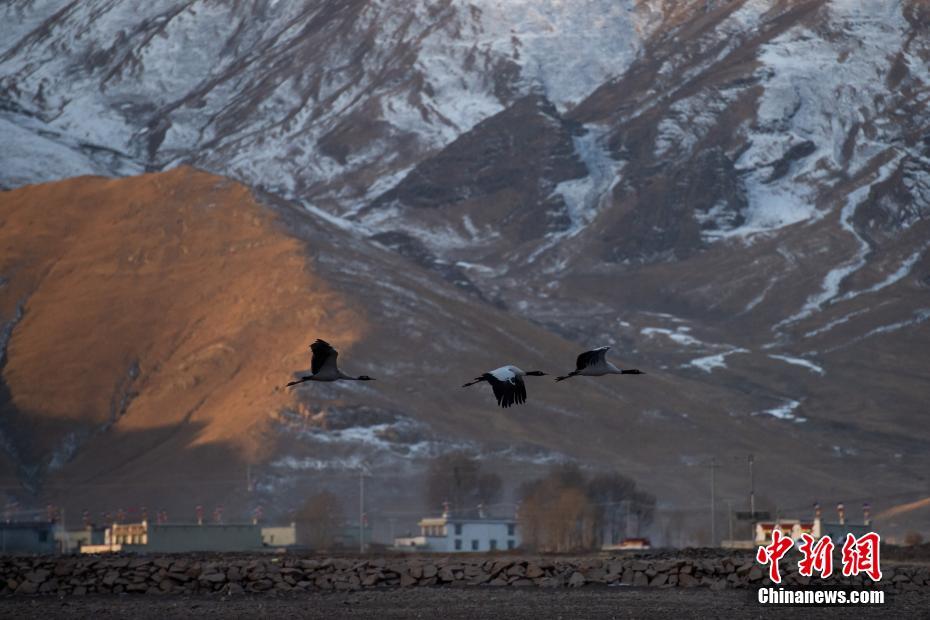 冬季,成群結(jié)隊(duì)的黑頸鶴遷徙到西藏林芝市,雅魯藏布江及江畔的農(nóng)田成了它們?cè)蕉臉?lè)園。[詳細(xì)] -