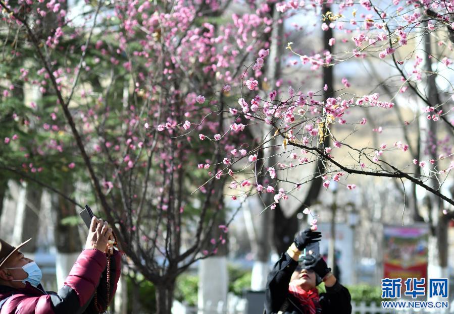 3月4日,人們?cè)诶_龍王潭公園賞花、拍照。新華社記者 覺(jué)果 攝