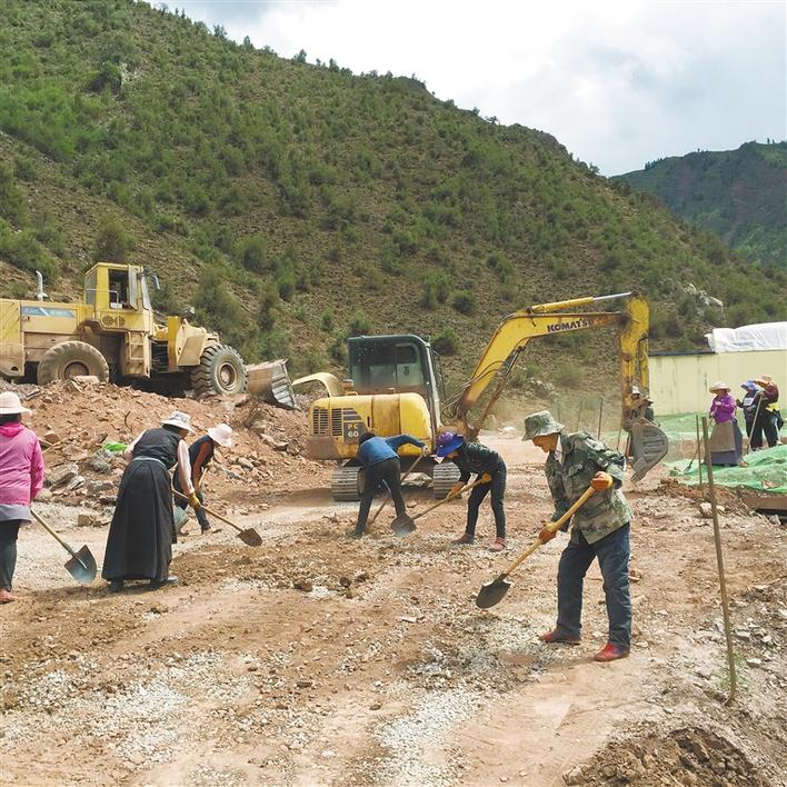 圖為農(nóng)牧民群眾積極參與道路工程建設。(圖片由昌都市卡若區(qū)脫貧攻堅指揮部提供)