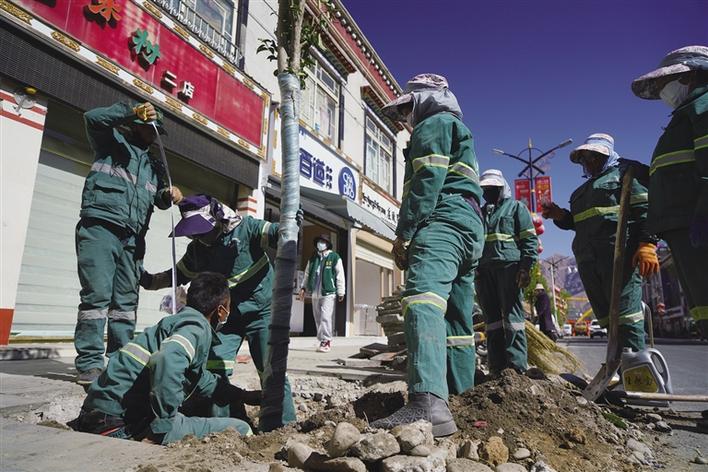 朵森格路北段苗木補(bǔ)栽工作自4月中旬開展,共出動(dòng)20余名園林工人,加班加點(diǎn)栽種?!坝?jì)劃在朵森格路北段種植75棵大葉女貞。”達(dá)娃說。