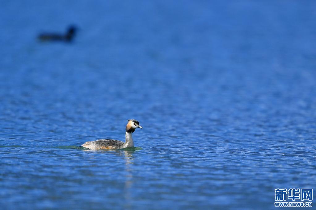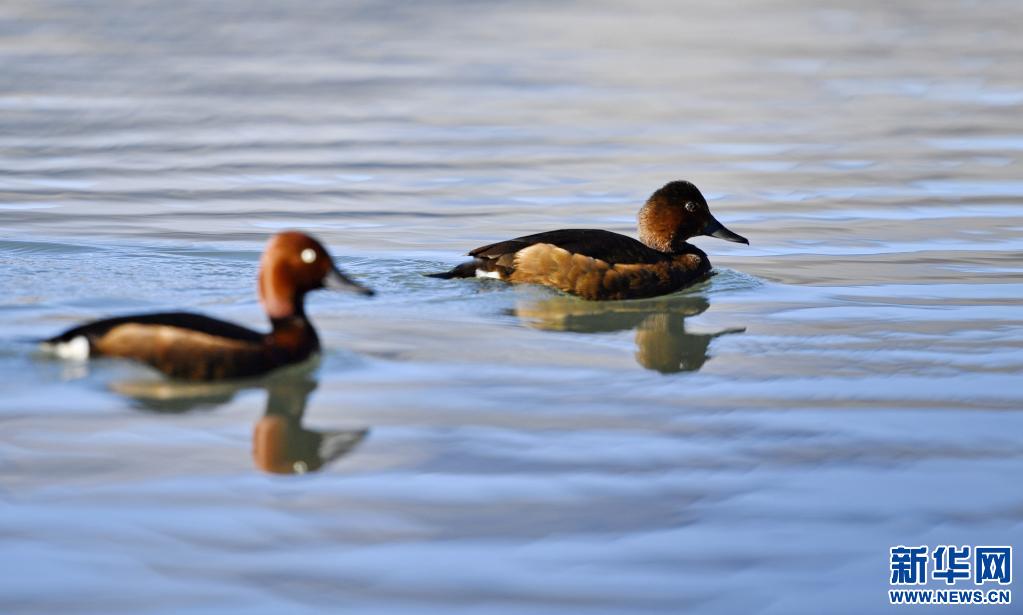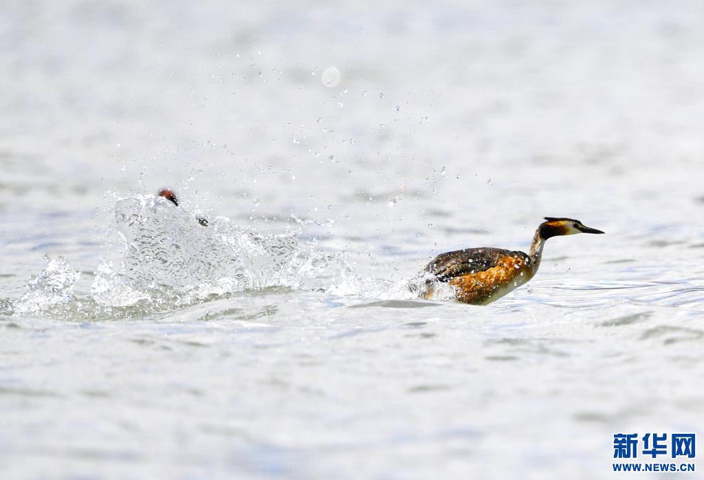 夏日里,鳳頭??和小??在西藏拉薩拉魯濕地國(guó)家級(jí)自然保護(hù)區(qū)水面上嬉戲。