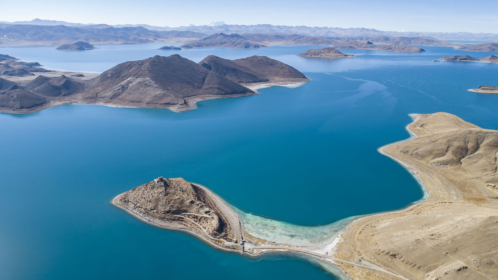 這是西藏羊卓雍錯景色(2021年1月10日攝,無人機(jī)照片)。
