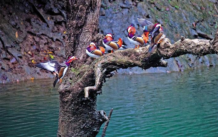 這是在湖南省邵陽(yáng)市城步苗族自治縣境內(nèi)的南山國(guó)家公園體制試點(diǎn)區(qū)拍攝的鴛鴦(2018年10月16日攝)。新華社發(fā) (湖南南山國(guó)家公園管理局供圖)