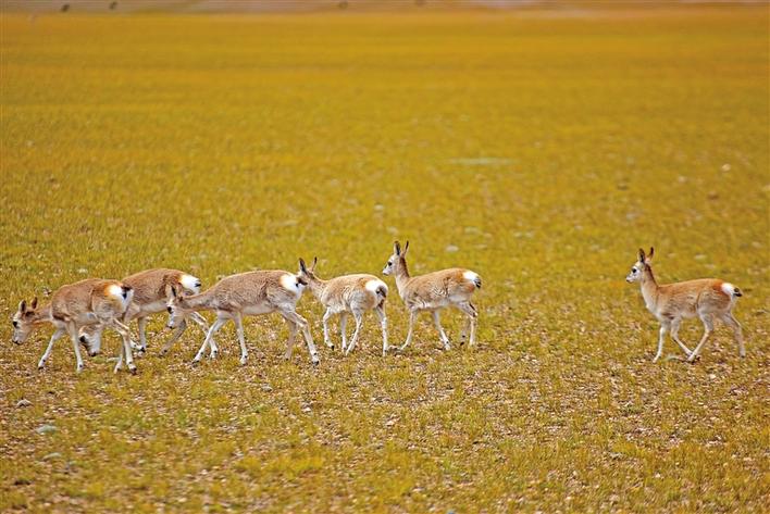 在羌塘國家級自然保護(hù)區(qū)拍攝的藏羚羊。新華社記者 孫瑞博 攝