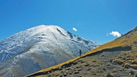 10月23日早晨,姜楠備好望遠(yuǎn)鏡、相機、水,準(zhǔn)備上山,同行的還有藏族同事扎拉和一位藏族牧民,任務(wù)是為云塔村3座小山上的紅外相機更換電池。這里的山并不高,但因高原氧氣稀薄,增添攀登難度。山間未完全融化的雪跡,也讓山路濕滑難走。