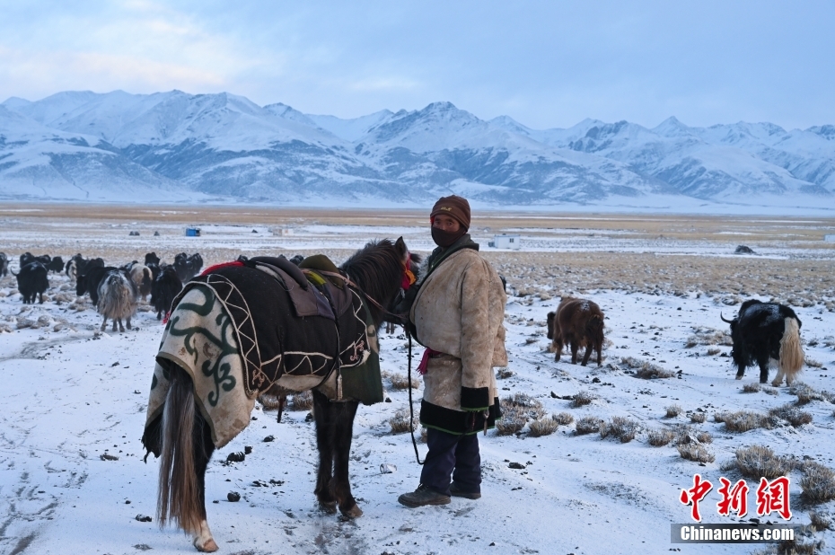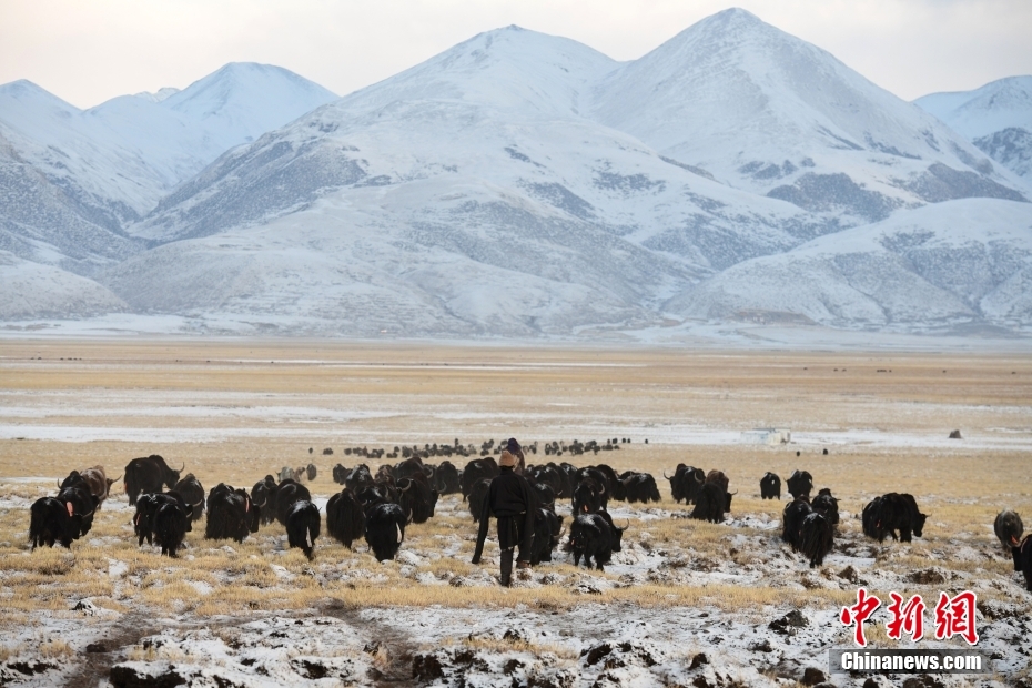 1月27日,當雄縣龍仁鄉(xiāng)烏達村牧民在雪中放牧。當雄縣位于西藏自治區(qū)拉薩市北部,距拉薩市區(qū)170公里?!爱斝邸?,藏語意為“天選牧場”,平均海拔約4200米,草場廣闊,土地肥沃。 中新社記者 貢嘎來松 攝