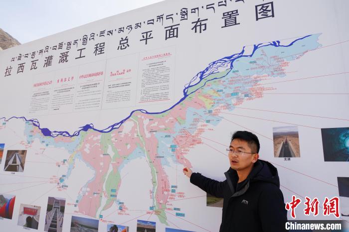 圖為貴德縣拉西瓦灌溉工程管理局副局長(zhǎng)方軍介紹工程詳情?!●R銘言 攝